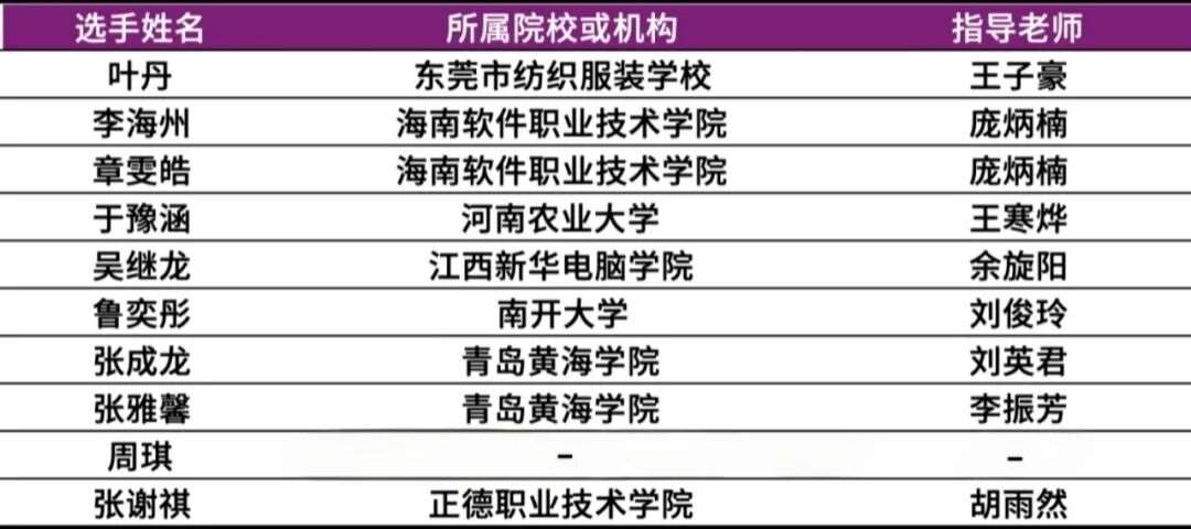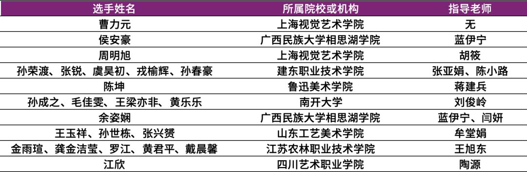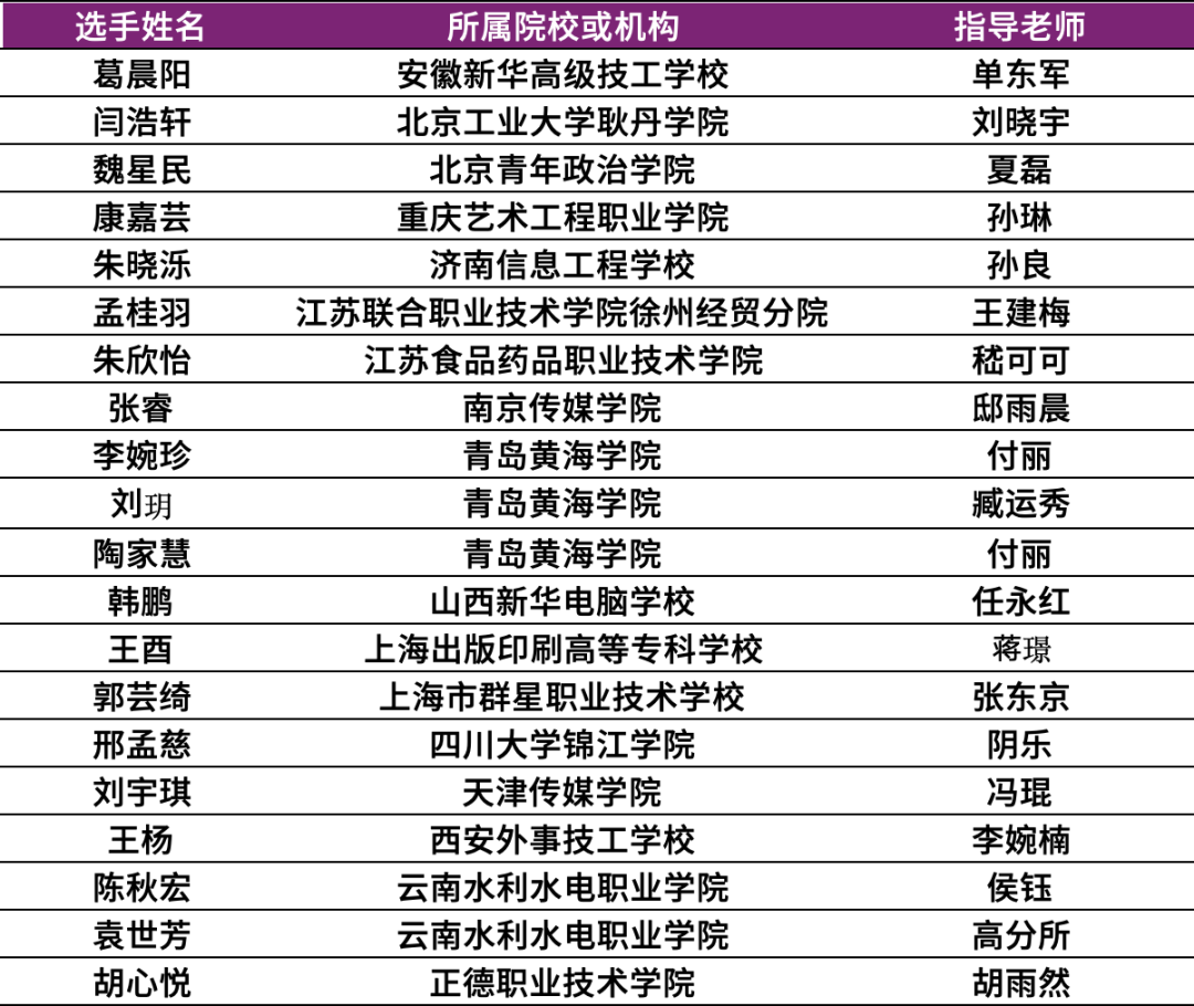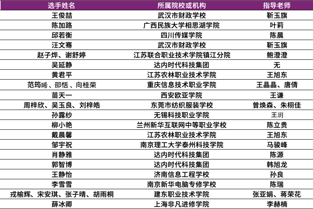 获奖名单如下:(名单以选手姓氏首字母升序排列,排名不分先后)。