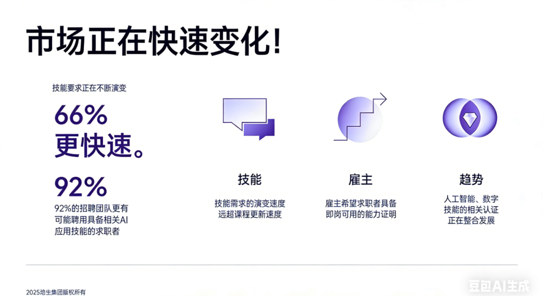 未来,恒利联创将持续发挥Certiport中国核心伙伴与本土化服务双重优势,联动培生、Adobe等国际生态资源,紧跟全球AI人才发展趋势,持续落地更多AI应用类认证产品,精准满足产业与企业在AI应用领域的多元化(通用及专业方向)与场景化需求(非开发岗与开发岗全覆盖)。深化产教融合、推进国际认证本土化落地,以权威认证为凭证、以产教融合为路径,持续为中国数字技能人才培养与数字经济高质量发展注入强劲动力。