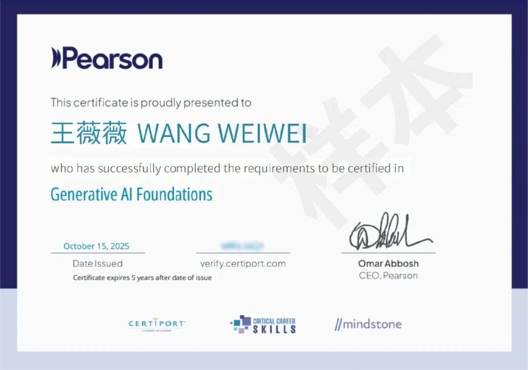 但实际招聘中,外企招聘端与求职端也陷入了双向困境:多位深耕外企招聘的HR反馈,AI应用人才筛选难度激增,缺乏统一评判标准而导致招聘效率低下;意向外企的求职者则坦言,摸不清外企AI能力要求,空有技能却无法有效证明,屡屡错失offer。培生旗下全球通行的生成式人工智能认证(以下简称“GAI认证”),恰好提供了适配解决方案——它明确了双方认可的AI应用能力标准,既能帮助HR快速判断候选人水平、高效筛才,也能助力求职者清晰自证能力。